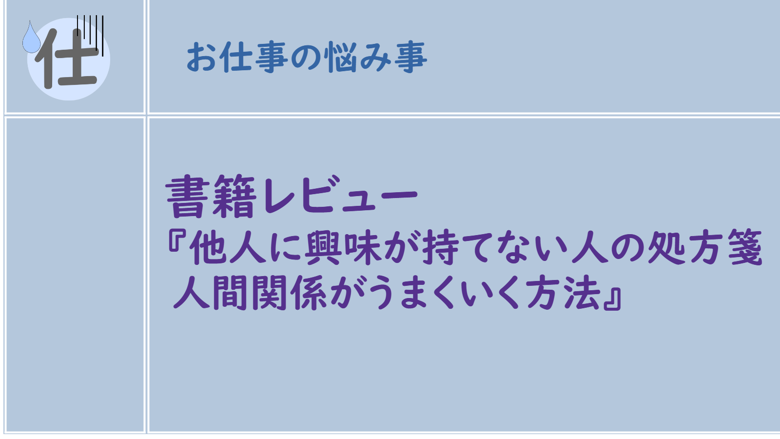 タイトルに「他人に興味が持てない人の処方箋」とあり、他人に興味が持てないことは私が改善したいポイントだったので手に取りました。
